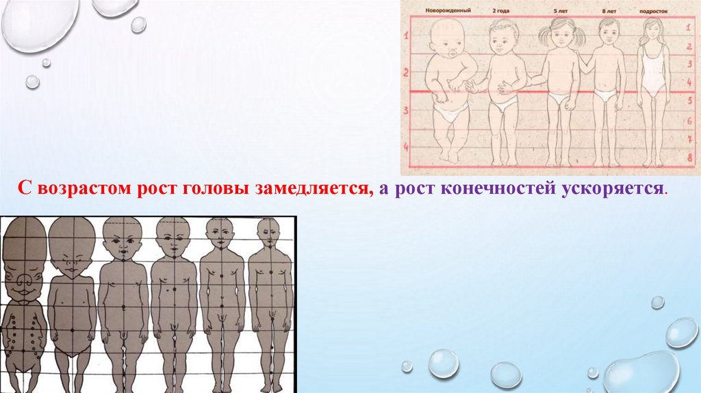 С возрастом рост головы замедляется, а рост конечностей ускоряется.10.