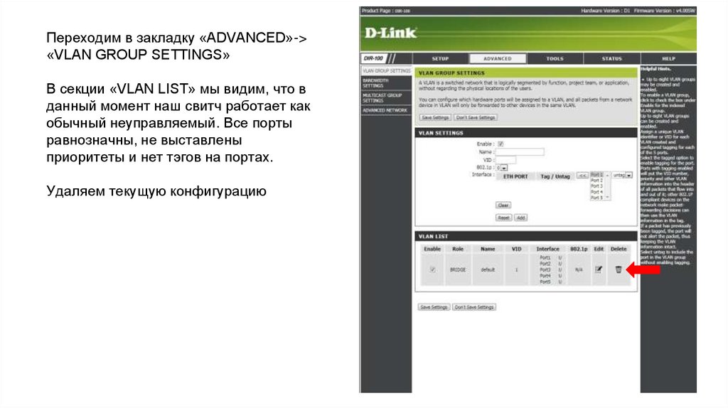 Настройка управляемого коммутатора D-Link DIR-1002.