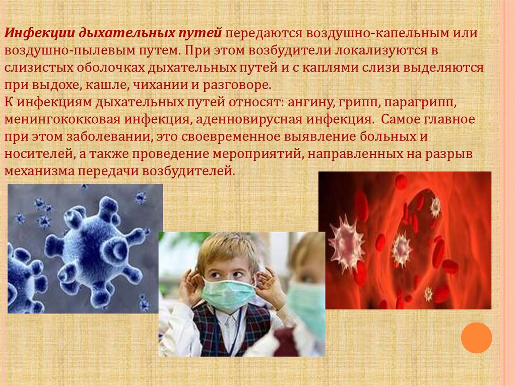 К инфекциям дыхательных путей относят: ангину, грипп, парагрипп,