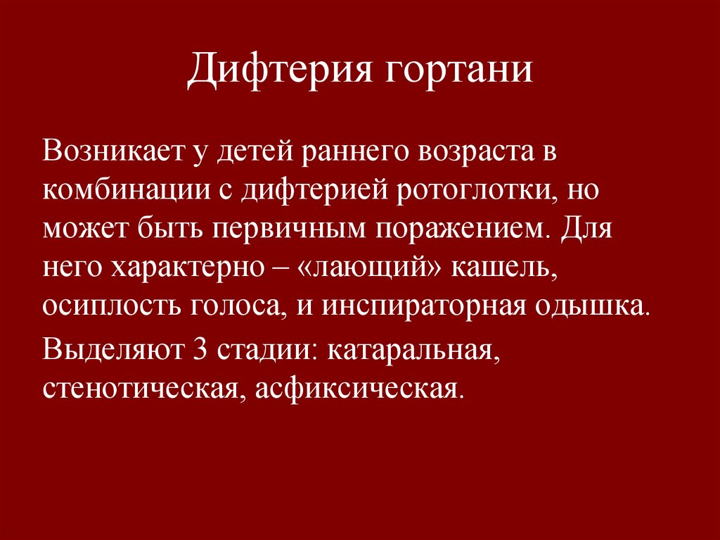 Дифтерия гортаниВозникает у детей раннего возраста в
