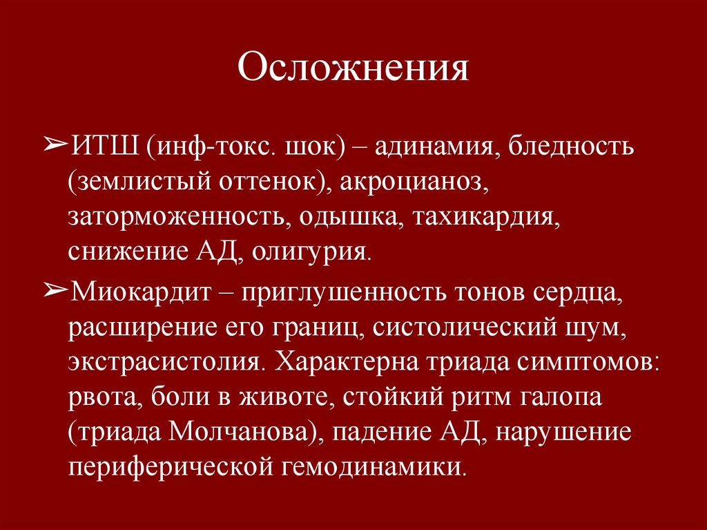 Осложнения➢ИТШ (инф-токс. шок) – адинамия, бледность