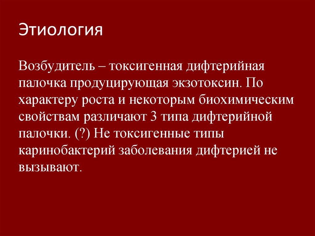 ЭтиологияВозбудитель – токсигенная дифтерийная