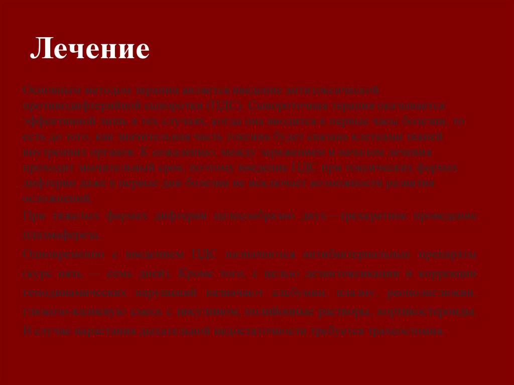 противодифтерийной сыворотки (ПДС). Сывороточная терапия оказывается