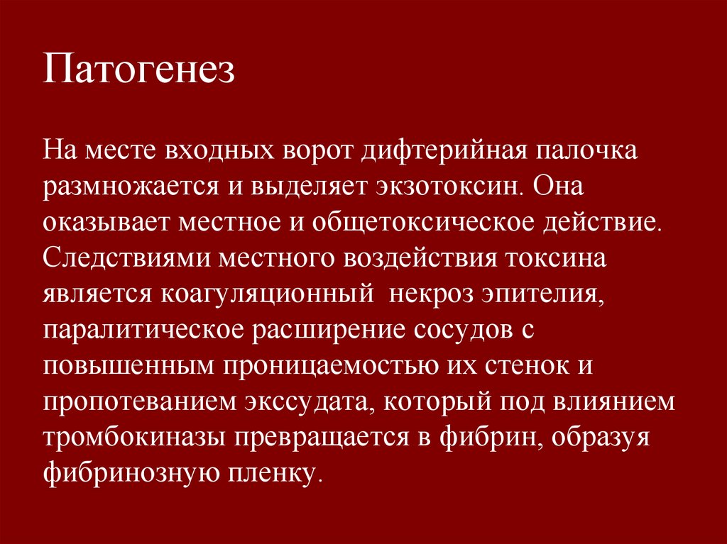 ПатогенезНа месте входных ворот дифтерийная палочка