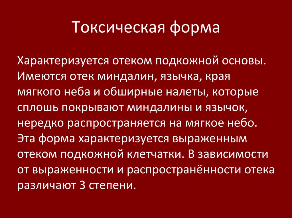 Токсическая формаХарактеризуется отеком подкожной основы.