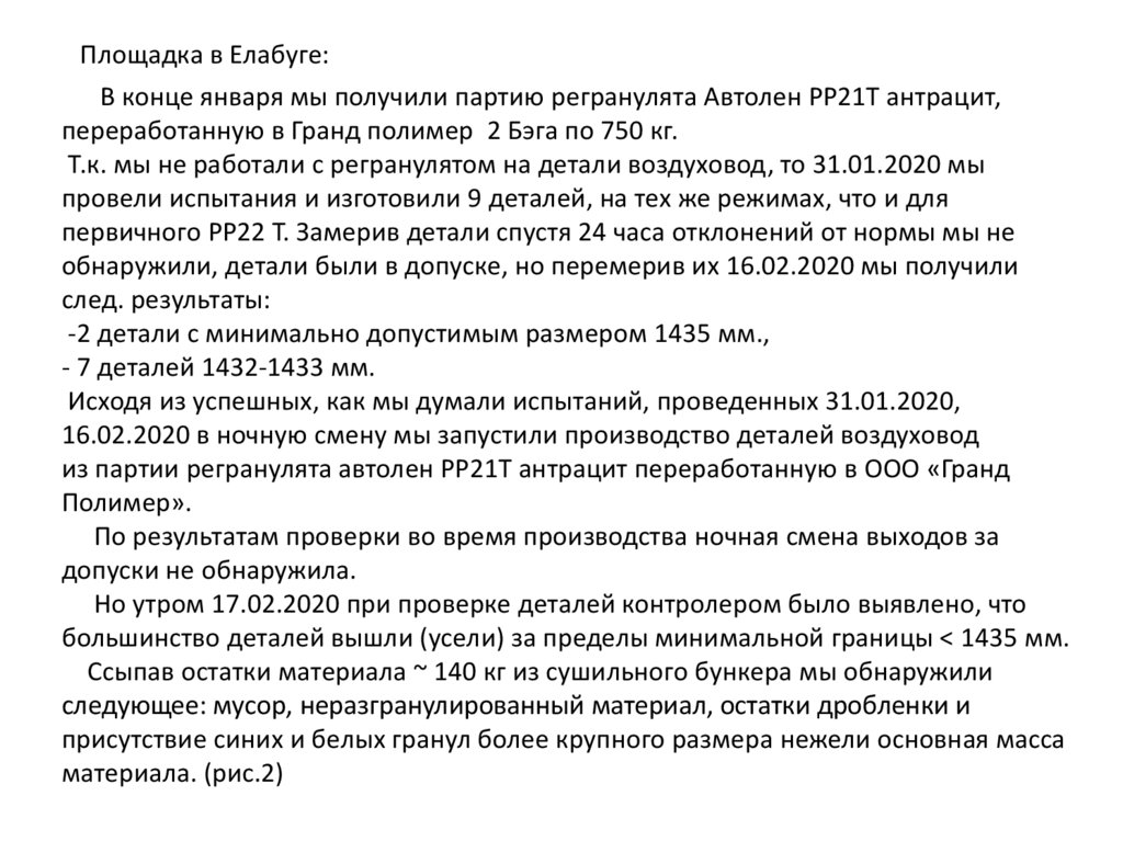 1. Претензия к качеству материала переработанного в ООО «Гранд-Полимер»