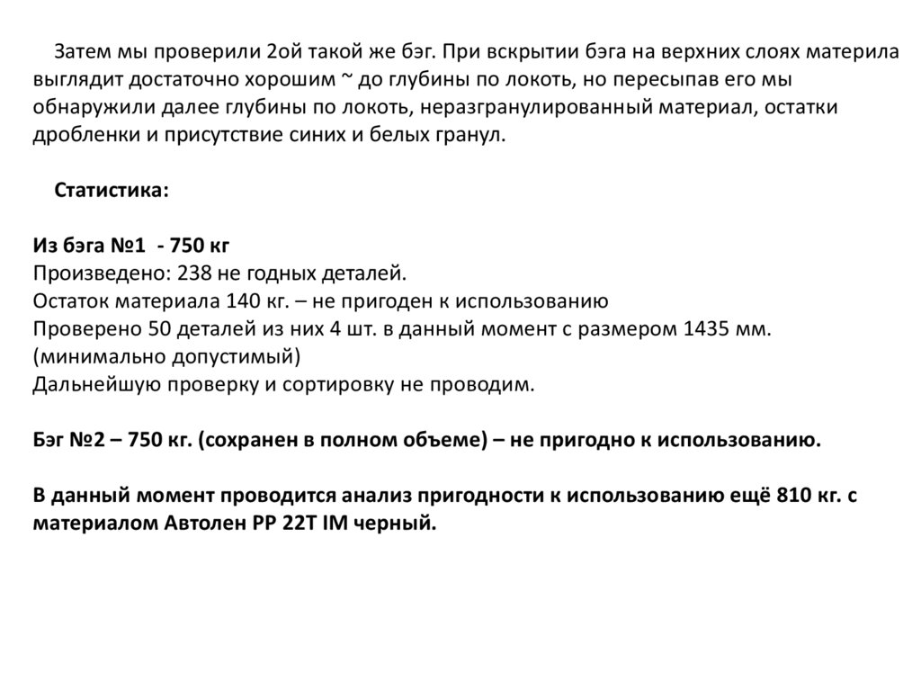 Остаток материала 140 кг. – не пригоден к использованию