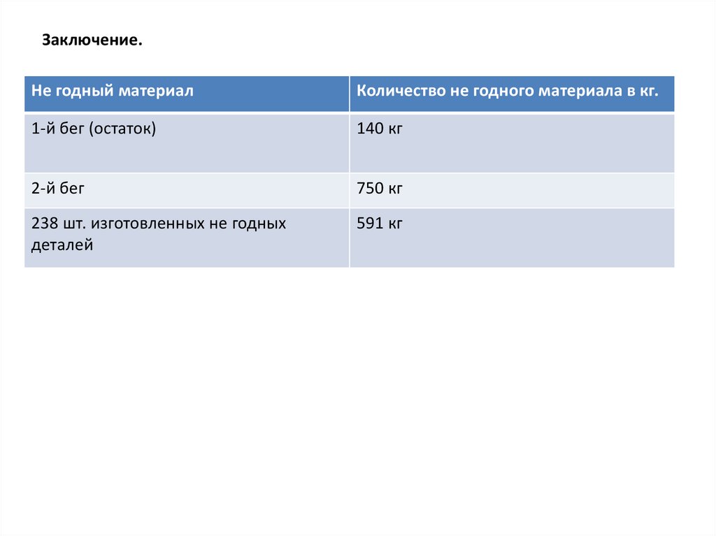 Заключение.Не годный материал
