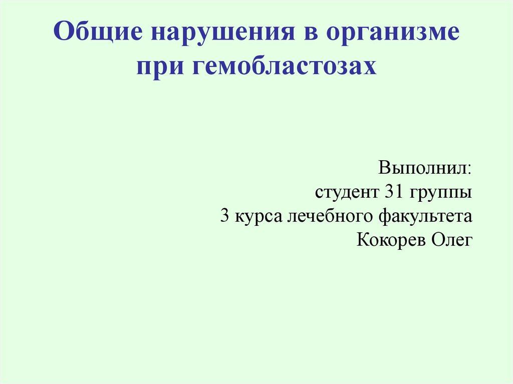 1. Общие нарушения в организме при гемобластозах