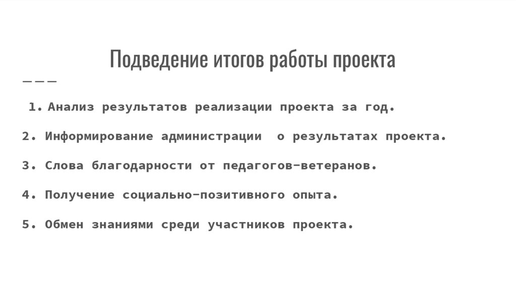 Подведение итогов работы проекта1. Анализ результатов реализации проекта за год.