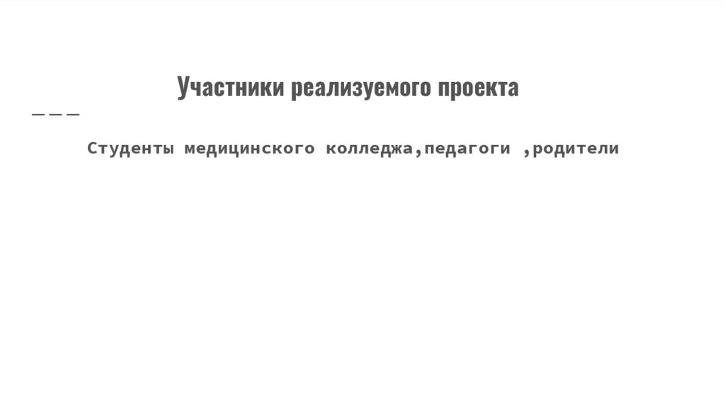 Участники реализуемого проектаСтуденты медицинского колледжа,педагоги ,родители