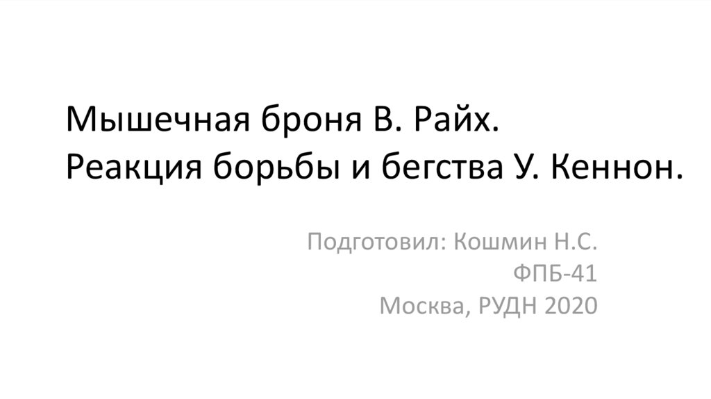 1. Мышечная броня В. Райх. Реакция борьбы и бегства У. Кеннон.