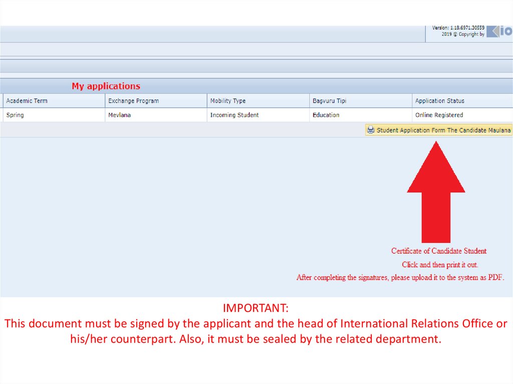 IMPORTANT:This document must be signed by the applicant and the head of International Relations Office or