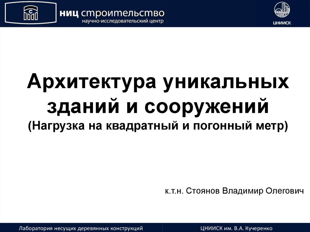 к.т.н. Стоянов Владимир ОлеговичЛаборатория несущих деревянных конструкций