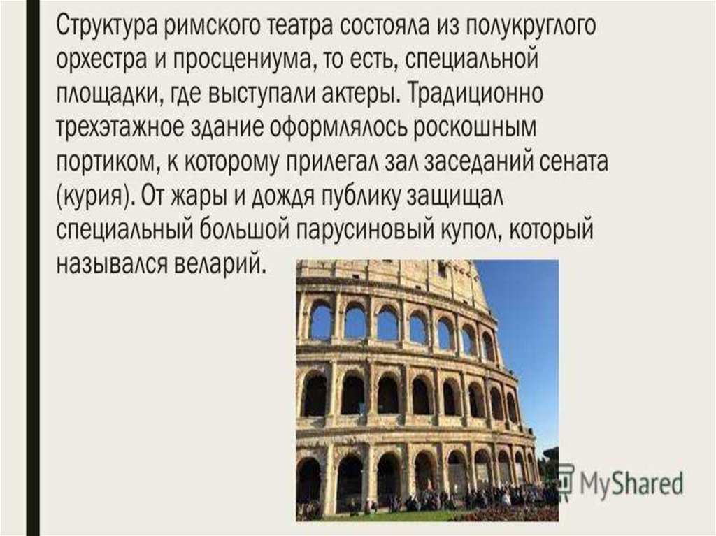 • Амфитеа́тр — античная постройка дляразнообразных массовых зрелищ