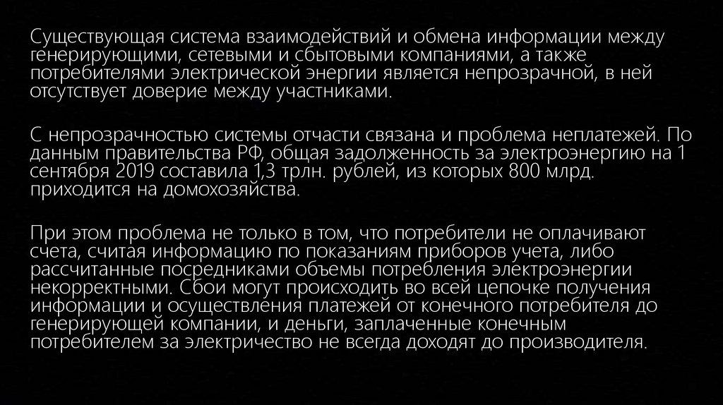 С непрозрачностью системы отчасти связана и проблема неплатежей. По