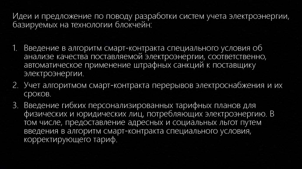 Идеи и предложение по поводу разработки систем учета электроэнергии,базируемых на технологии блокчейн: