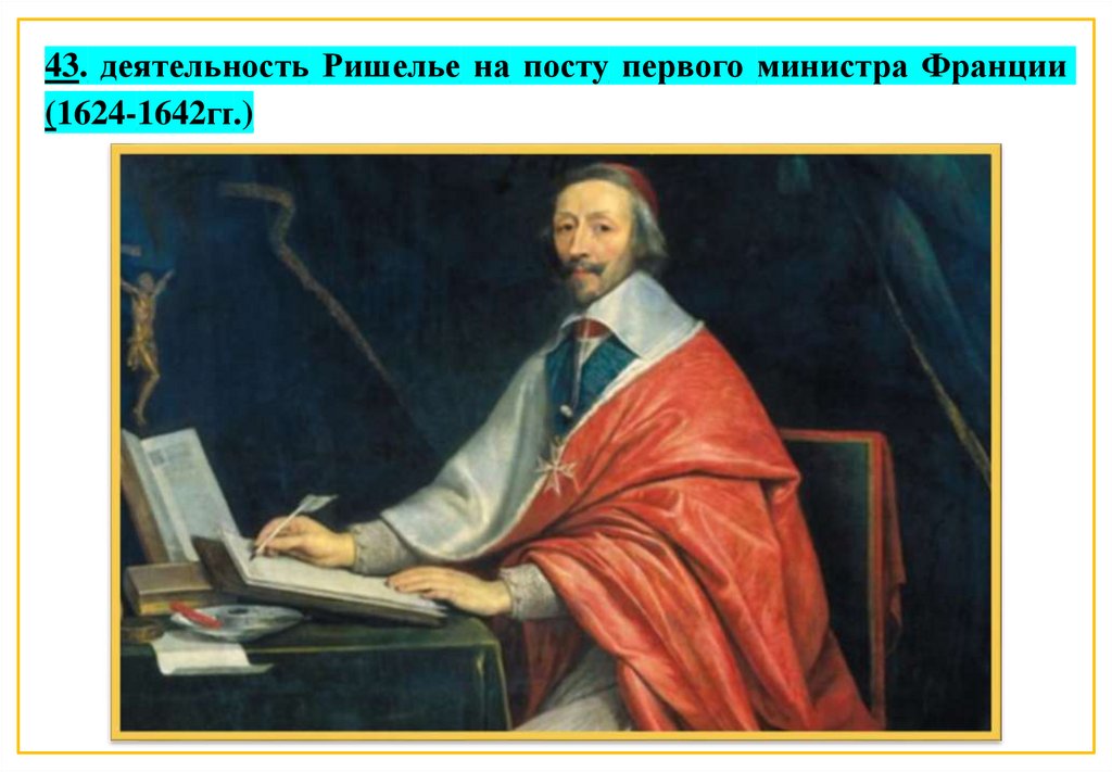 43. деятельность Ришелье на посту первого министра Франции(1624-1642гг.)