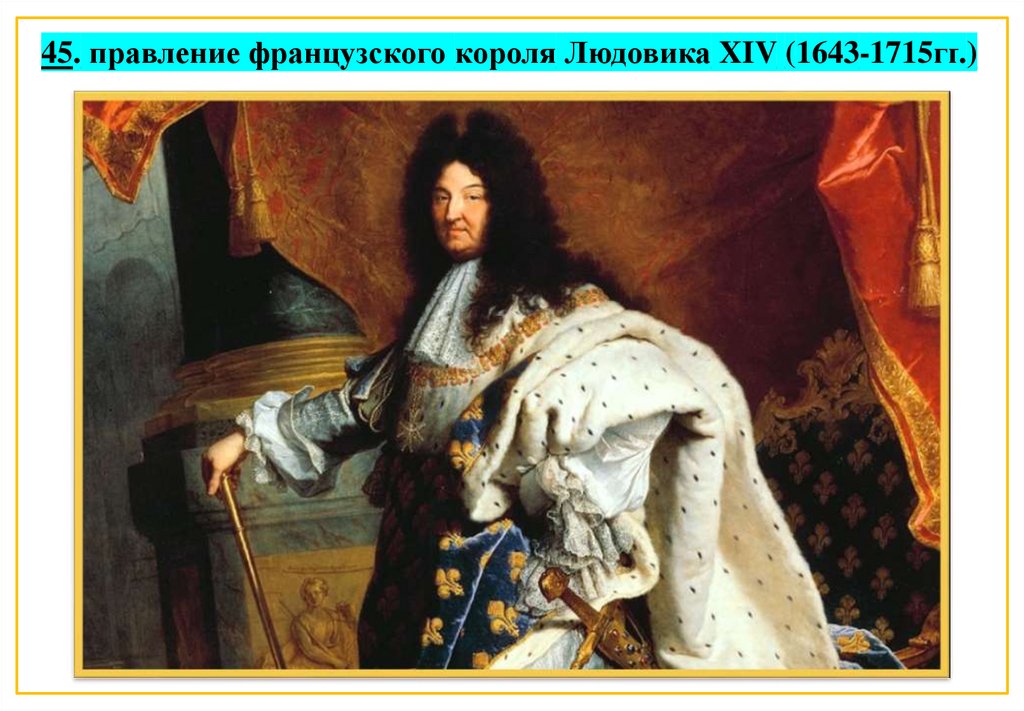45. правление французского короля Людовика XIV (1643-1715гг.)17.