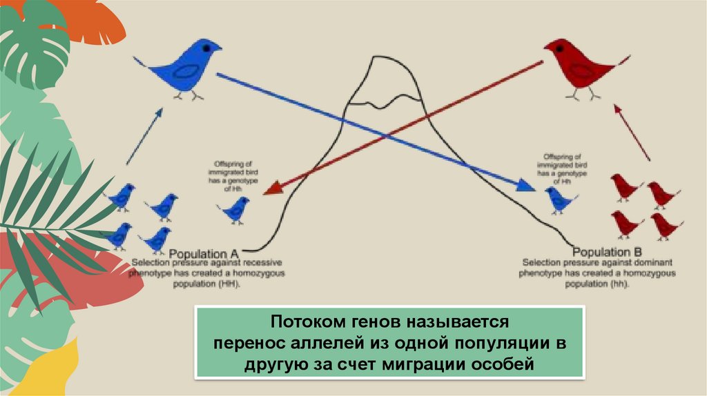 Поток генов (Genetic flow) – перемещения аллелей и генотипов между популяциями в процессе