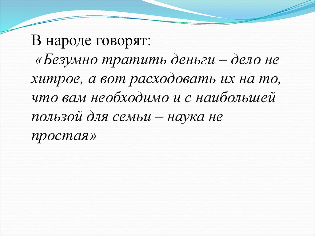 В народе говорят:«Безумно тратить деньги – дело не
