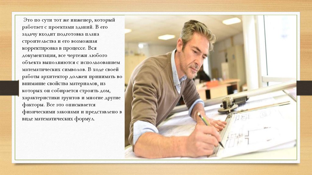 Это по сути тот же инженер, которыйработает с проектами зданий. В его