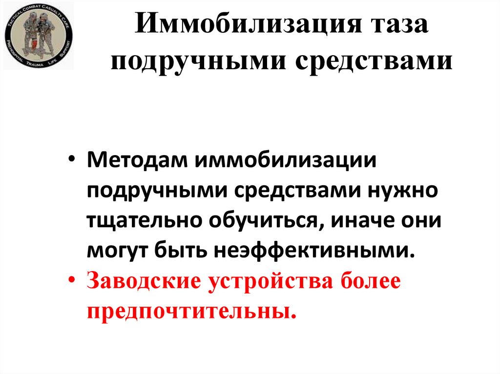• Этот метод иммобилизации таза по результатам
