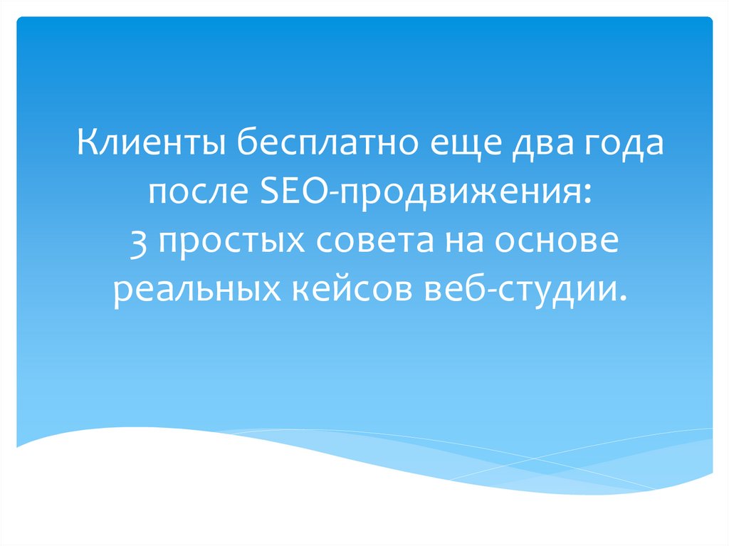 1. Клиенты бесплатно еще два года после SEO-продвижения: 3 простых совета на основе реальных кейсов веб-студии.