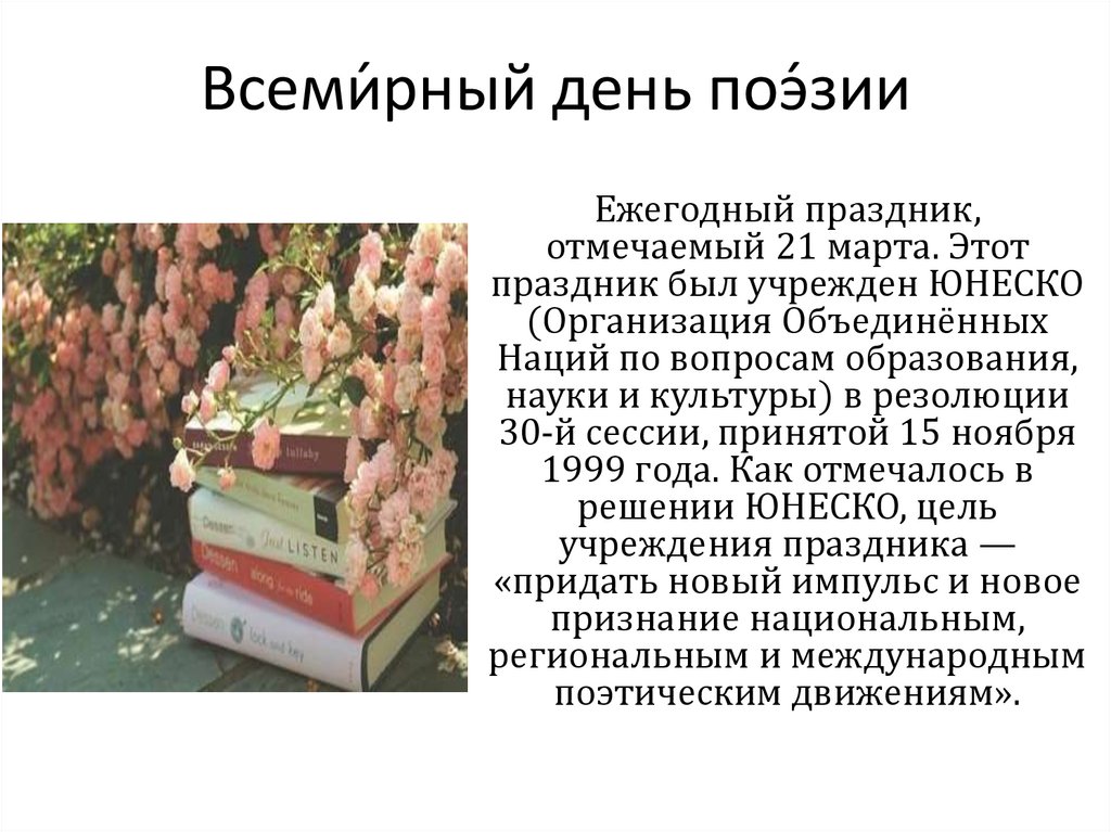 Всеми́рный день поэз́ ииЕжегодный праздник,