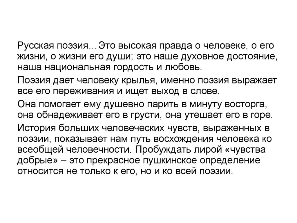 Русская поэзия…Это высокая правда о человеке, о егожизни, о жизни его души; это наше духовное достояние,