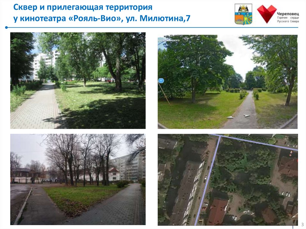 Сквер и прилегающая территорияу кинотеатра «Рояль-Вио», ул. Милютина,7