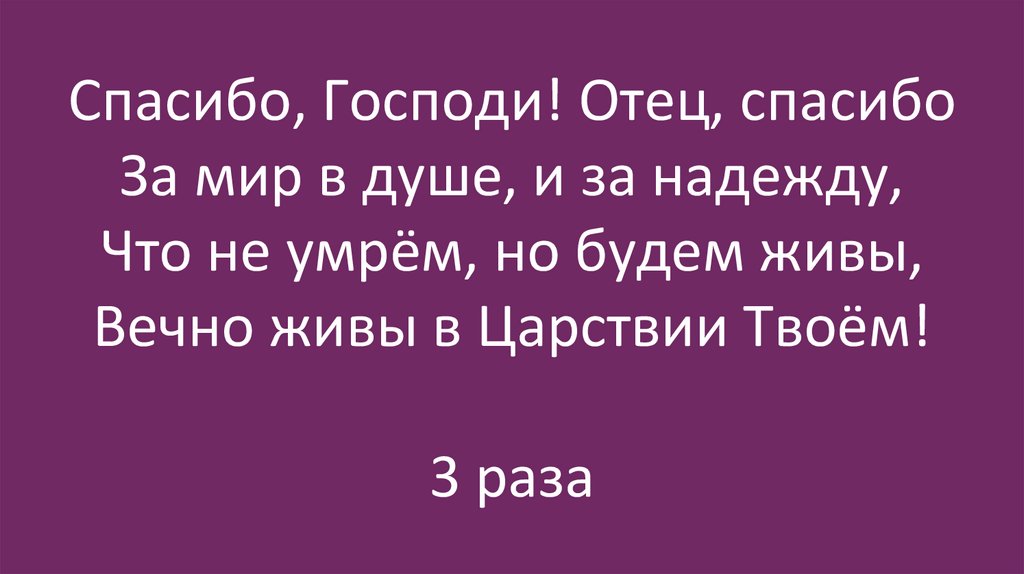 Спасибо, Господи! Отец, спасибоЗа мир в душе, и за надежду,