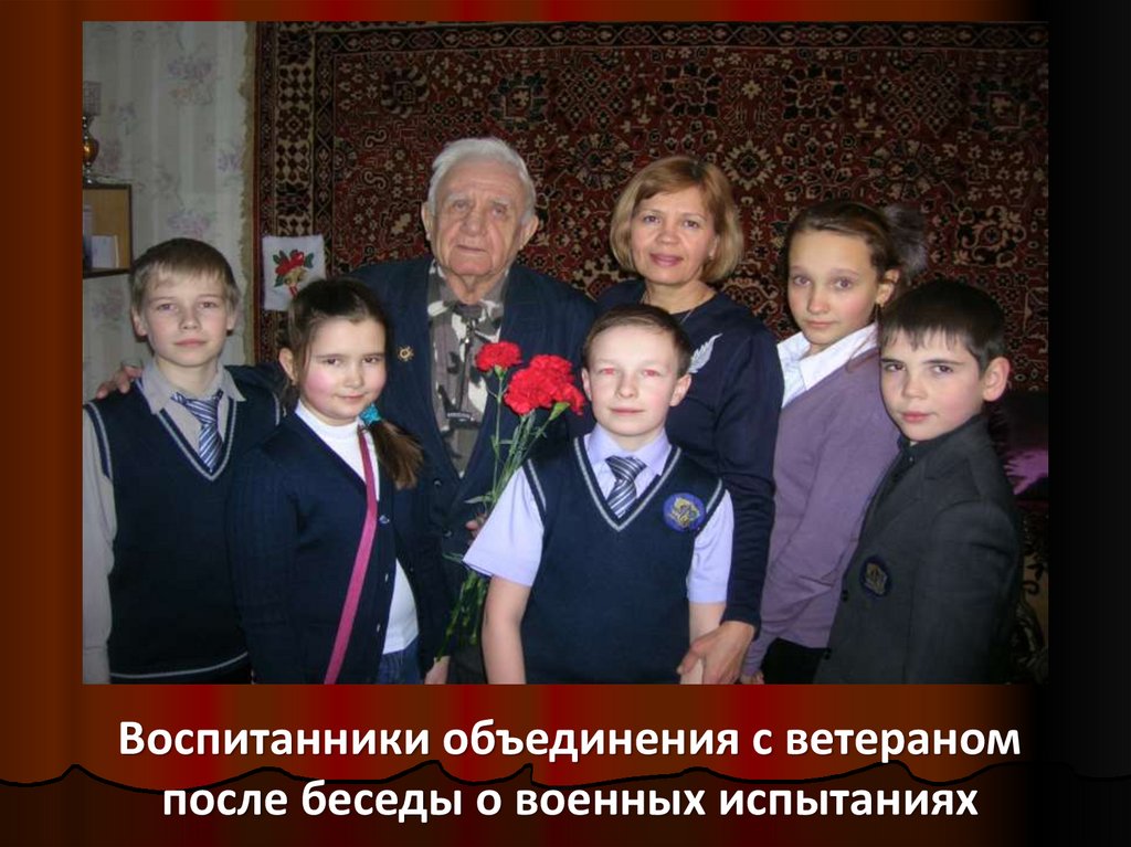 Воспитанники объединения с ветераномпосле беседы о военных испытаниях