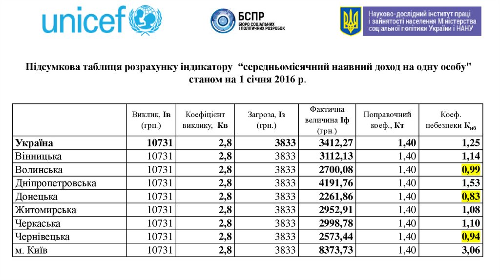 Підсумкова таблиця розрахунку індикатору “середньомісячний наявний доход на одну особу"станом на 1 січня 2016 р.