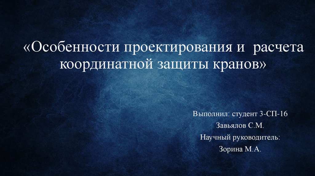 1. «Особенности проектирования и расчета координатной защиты кранов»