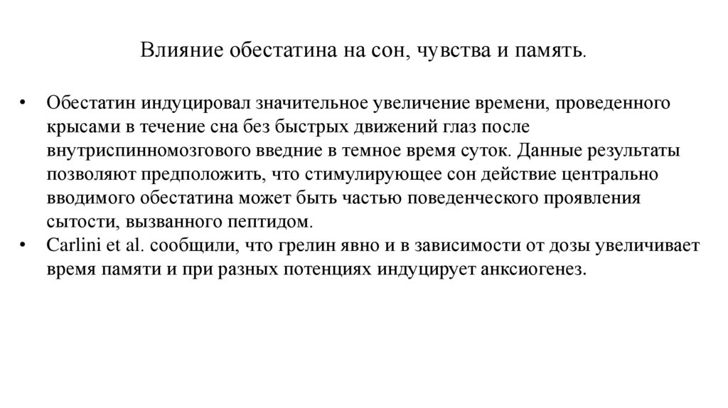 Carlini et al. сообщили, что грелин явно и в зависимости от дозы увеличивает