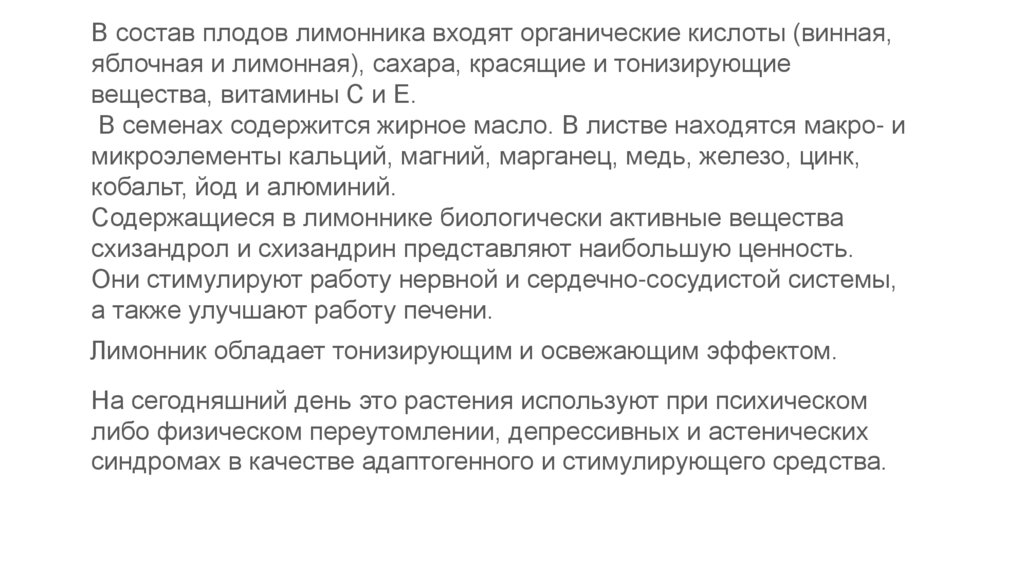 Содержащиеся в лимоннике биологически активные вещества