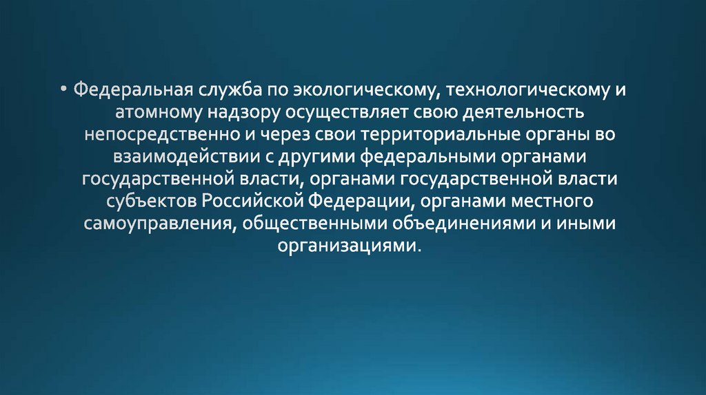 • Федеральная служба по экологическому, технологическому иатомному надзору (Ростехнадзор)