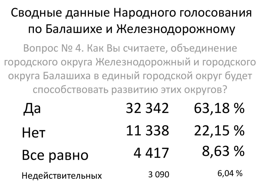 1. Результаты Народного голосования по вопросу объединения Балашихи и Железнодорожного в единый городской округ