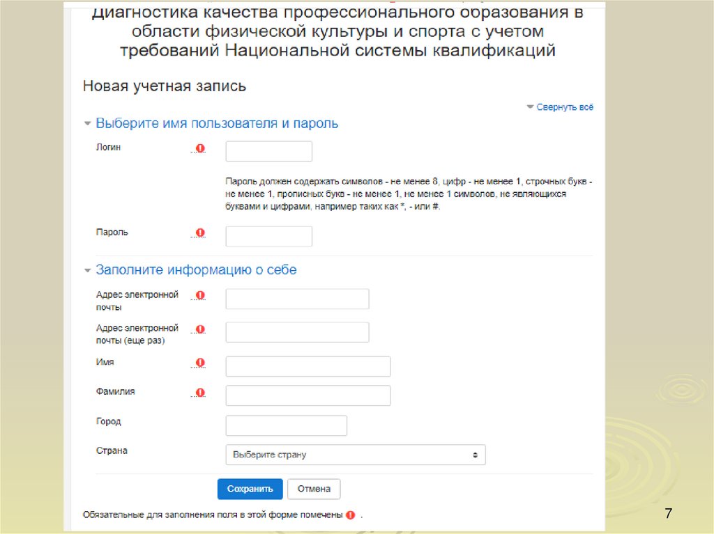 выполнить регистрацию на сайте и тест: