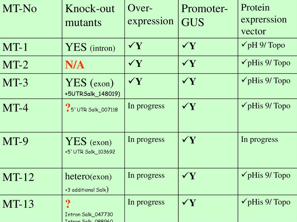 • 2. Available knock-out mutants -Y/heterozygous