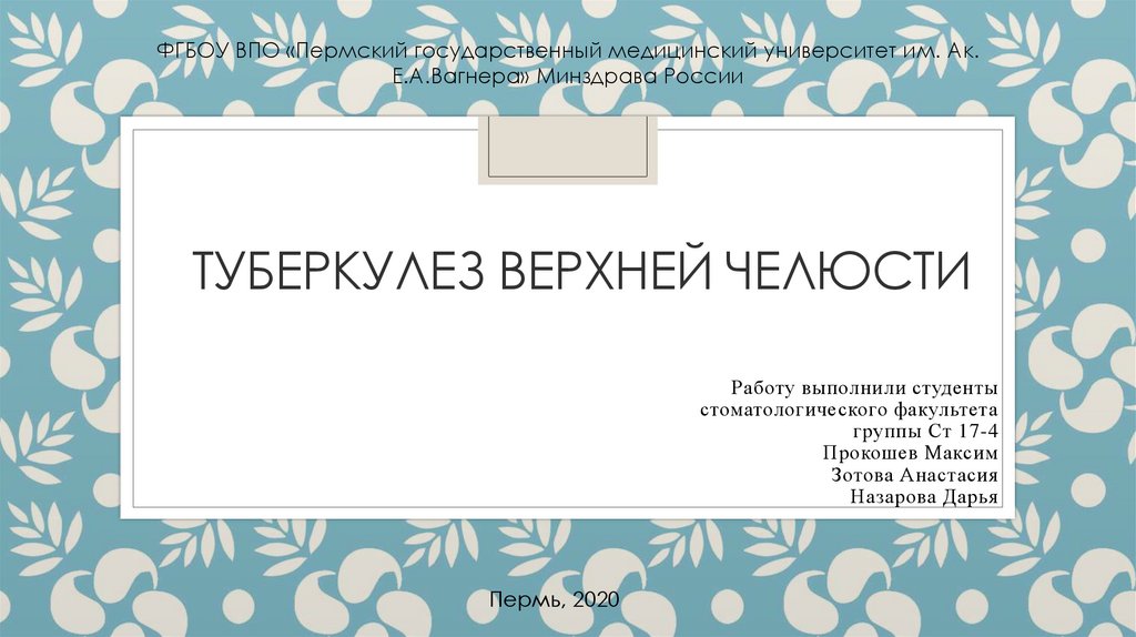 ТУБЕРКУЛЕЗ ВЕРХНЕЙ ЧЕЛЮСТИ