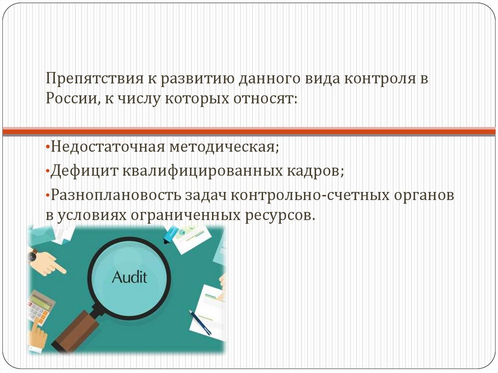 Препятствия к развитию данного вида контроля вРоссии, к числу которых относят:
