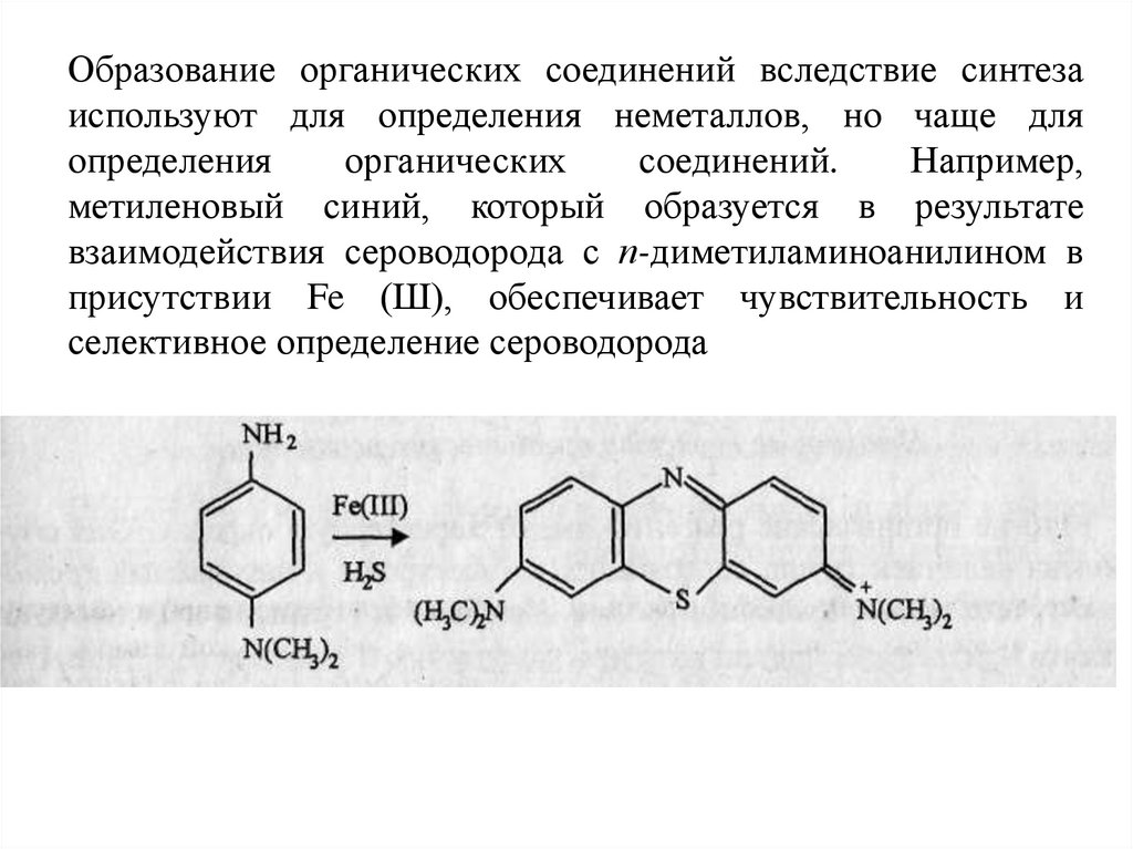 Образование органических соединений вследствие синтезаиспользуют для определения неметаллов, но чаще для