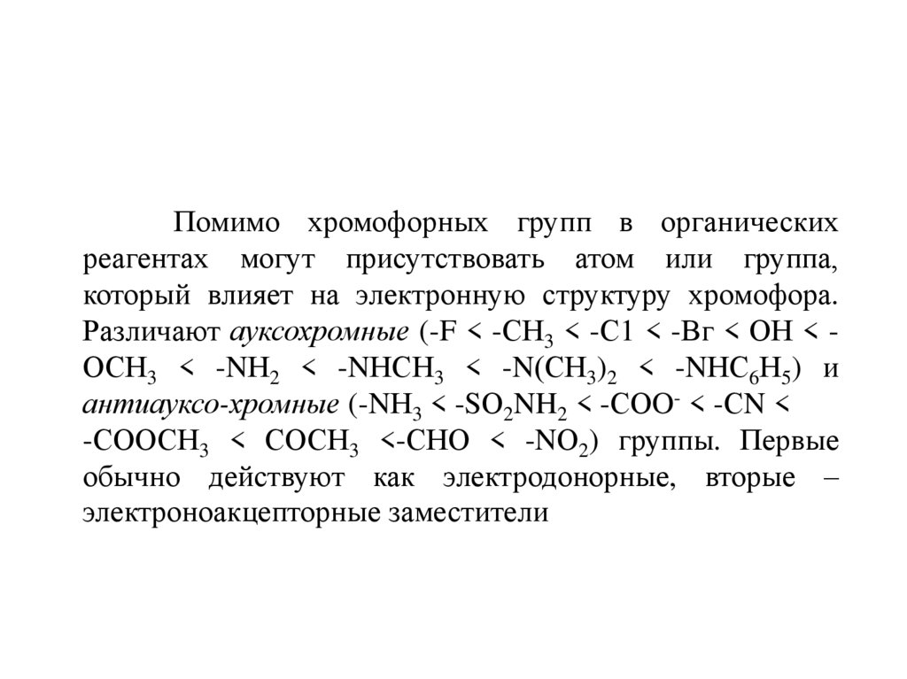 Помимо хромофорных групп в органическихреагентах могут присутствовать атом или группа,