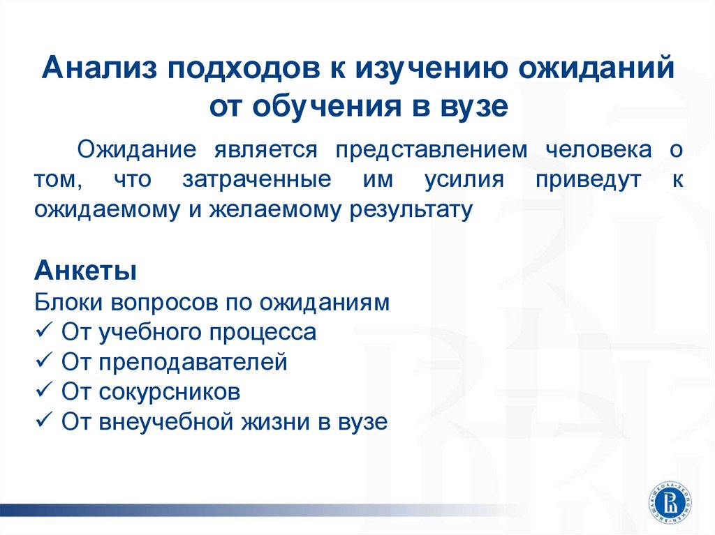 Анализ подходов к изучению ожиданийот обучения в вузе