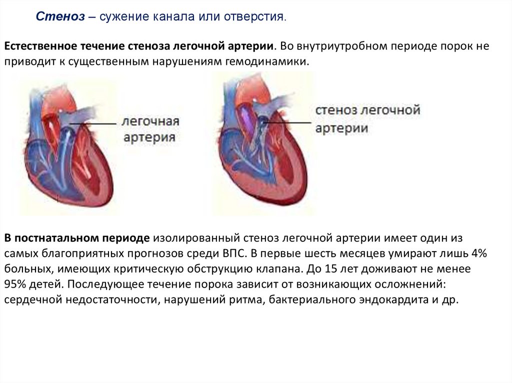 Стеноз – сужение канала или отверстия.Естественное течение стеноза легочной артерии. Во внутриутробном периоде порок не