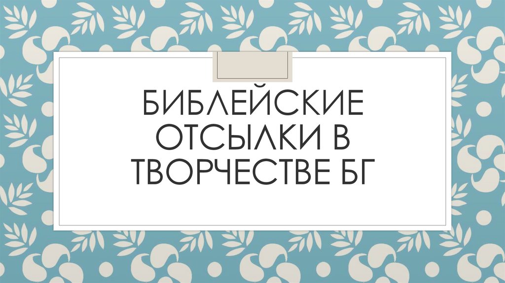 Библейские отсылки в творчестве Бригады Гребенщикова (БГ)