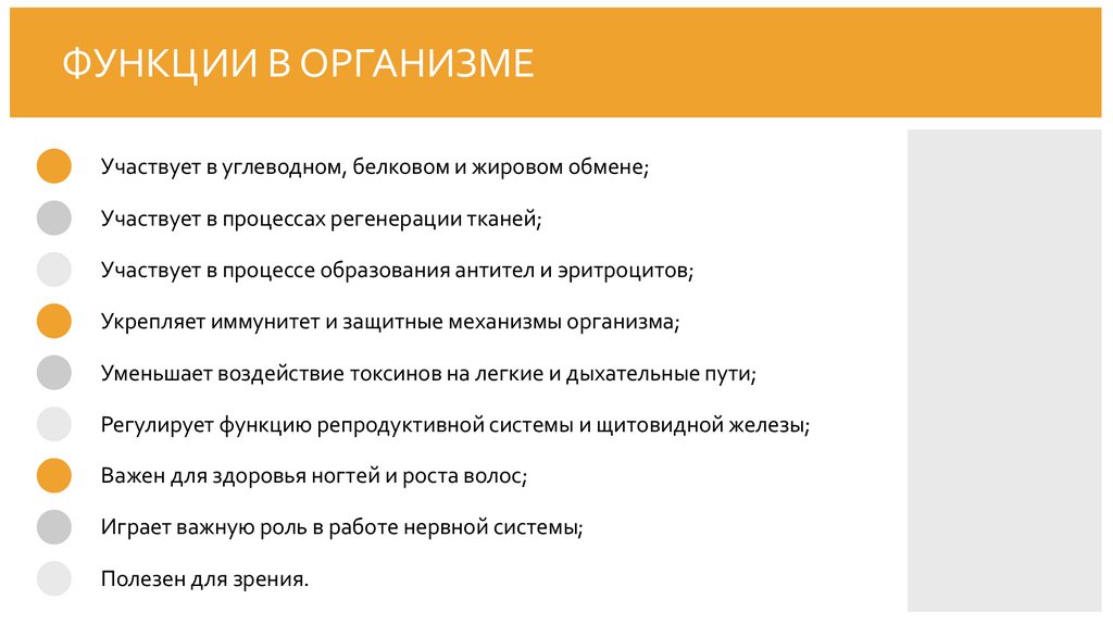ФУНКЦИИ В ОРГАНИЗМЕУчаствует в углеводном, белковом и жировом обмене;
