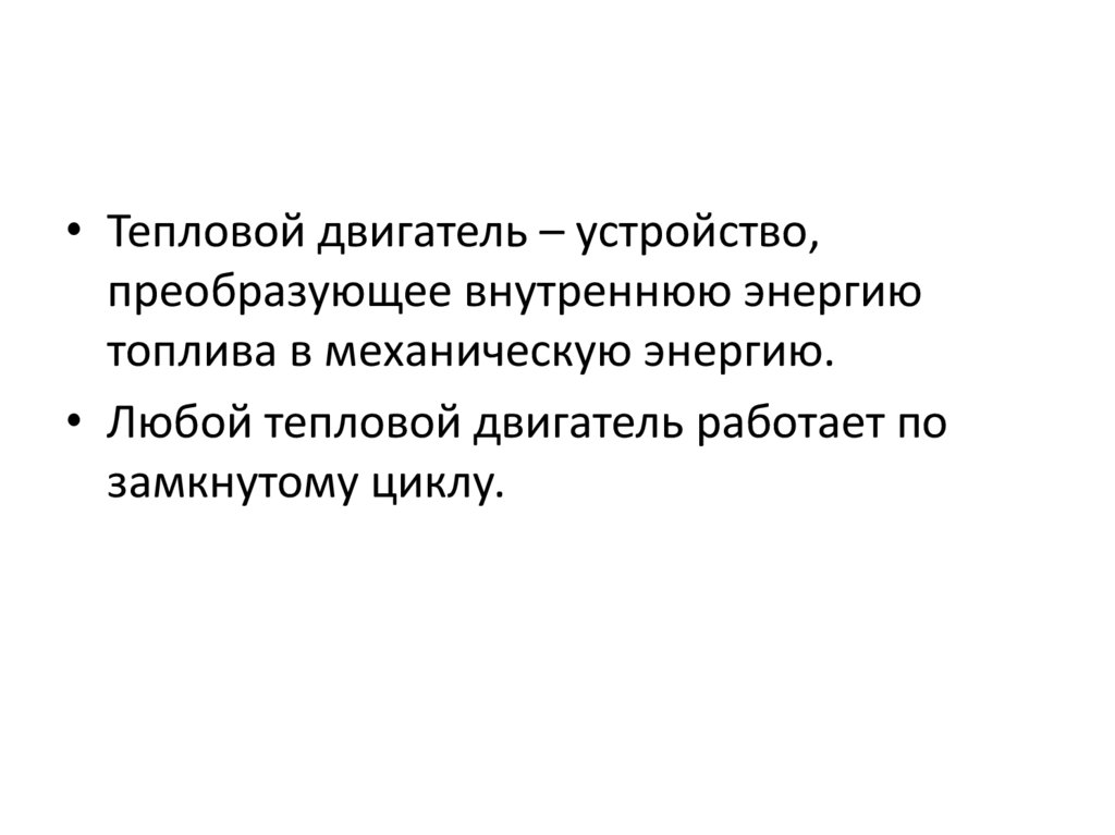 • Тепловой двигатель – устройство,преобразующее внутреннюю энергию